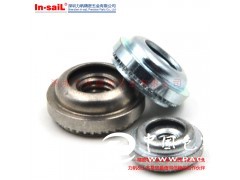壓鉚螺母是應用于薄板或鈑金上的一種螺母,外形呈圓形,一端帶有壓花齒及導向槽,其原理是通過壓花齒壓入鈑金的預置孔內(nèi),一般是預置孔的孔徑略小于在壓鉚螺母的壓花齒外徑,通過壓力使壓鉚螺母的花齒擠入板內(nèi),導致孔的周邊產(chǎn)生塑性變形,變形物被擠入導向槽,從而產(chǎn)生鎖緊的效果。