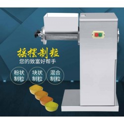 粉末的流動性差易造成裂片,片重差異大,所以在壓片前-好先制成顆粒,中西藥制粒一般都是用此種型號的機器,因為此型號機器制作的顆粒的流動性好、所壓制的片重均勻,色澤一致。本機可以將濕粉末制成顆粒,也可對一些條狀及不規則狀的易碎、易松散、較脆物料的打碎打散之用,作為磨粉的前道工序。一機具備制粒、粉碎、布料三種功能,可達到一機多用的目的。