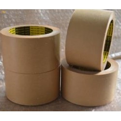 牛皮紙膠帶特性及用途:以牛皮紙為基材,涂覆熱熔型膠粘劑、乳液型聚丙烯酸酯膠粘劑制作而成的膠粘帶。牛皮紙膠帶具有使用方便,容易撕斷,自粘牛皮紙膠帶故廣泛用于輕重包裝封箱、紙加工業接駁使用及環保要求較高的