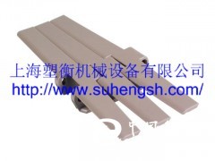 塑料鏈板公司主營產品820單絞直行鏈:820單絞直行鏈:板寬有63.5mm,82.6mm,88.9mm,101.6mm,114.3mm,152.4mm,190.5mm等型號,另外有820單絞直行迷你鏈,板寬30mm.和板寬32mm。以上都有配套鏈輪,節距是38.1mm。821雙鉸直行鏈:板寬190.5mm,254.0mm,304.8mm。節距38.1mm,有821系列配套鏈輪。880TAB轉彎鏈:標準半徑的轉彎鏈和小半徑轉彎鏈,880標準尖角轉彎鏈,880M磁性轉彎鏈。板寬82.5mm,114.3mm節距38.1mm。以上各種有配套鏈輪:主動輪,被動輪,機加工和注塑鏈輪。882TAB重型轉彎鏈:板寬152.4mm,190.5mm,254mm,304.8mm。節距38.1mm,有配套鏈輪。塑鋼頂板鏈——主要材質有:塑鋼 ACETAL、聚丙烯、PP、聚乙烯、PE、尼龍、PA,而這種也是新型輸送帶,比傳統輸送逞有著許多優勢:具有高強度、耐酸、堿、鹽水等特點,溫度范圍廣、防粘性佳,可加檔板,提升角度大,容易清洗,維修簡單。可根據客戶需要采用各種材質制作,具有拉力大,耐磨性能好,耐腐蝕,耐酸堿的作用。不銹鋼304,201,碳鋼。公司塑料板寬有:782.6mm,88.9mm,101.6mm,114.3mm,127.0mm,152.4mm,190.5mm.節距36mm, 38.1mm等。有812直行鏈配套鏈輪。