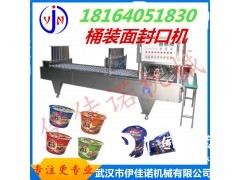 桶裝方面自動封口機,采用不銹鋼機身,下杯、放蓋、封口均一次完成,嚴格符合食品衛生的要求。該機主要用杯、盒、碗裝、方便面、藕粉、米線便等食品封口,也可以用于其它異型裝的封口。自動下杯,自動放膜,自動封口、自動出杯;采用凸輪分度器,使下膜定位精確,機器運轉平穩;吸膜與封口同時完成,下膜移動對蓋膜定位精度無影響;準確的二次封口、封口壓力可調整,封口強度好;操作簡便、安全。方便面的工作流程:自動放碗、手工放面及佐料、自動放蓋、自動封口、自動出碗。