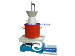 將坍落度筒放在容器內(nèi),在坍落度筒內(nèi)裝配重物(其重量相當(dāng)于料重的重物)。松開四個螺栓,將喂料斗扣緊于坍落度筒上緣,并使旋轉(zhuǎn)架和立柱按圖(一)中位置扣好,然后擰緊四個六角頭螺檢。松開定位螺釘,按圖位置使透明圓盤放在坍落度筒上,并使立柱和導(dǎo)桿扣好,按數(shù)顯表置零鍵調(diào)零。