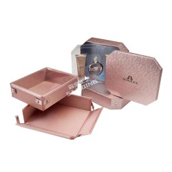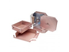 此款香水盒包裝表面選用褐色的樹皮木貼且涂上啞光漆,香水盒包裝色調復古,雕刻相關文采方面的字句,香水盒包裝文字醒目,生動抓住顧客視覺,起到畫龍點睛的作用.另外,香水盒包裝設計存放兩瓶酒,用中國古代開門的理念設計這款香水盒寓意開門紅,并且為了防止震動,香水盒包裝內襯采用優質絨布料,手感柔軟緊實,把門打開就展現香水盒包裝酒本身高貴視覺,香水盒包裝可以防潮濕,防腐蝕,能夠很好散發出自身的香醇.