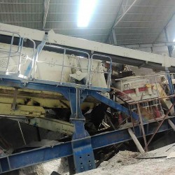 2、山東濟南日處理6000噸的石灰石碎石制砂生產線,使用有鋼機械的移動破碎站