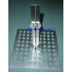 將被測試樣平整放在硬質(zhì)平板上,松開測針底部的擰緊螺母,將儀器輕放在被測試樣上,慢慢將測針插入被測試樣中,直至底部,看刻度尺指針滑塊平行處所指厚度,即為被測試樣厚度。