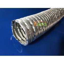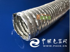 構造:以銀白色耐中溫無塵厚0.1mm復合鋁皮為風管材料、內部由寬8mm厚5mm凹槽形亞鉛支撐金屬片以螺旋形連續緊密夾扣制成、精致易彎曲施工耐中溫、適合無塵室使用之內夾復合鋁皮風管