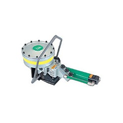 3、 左手握緊咬切手柄,右手來回?fù)u動(dòng)搖柄,收緊輪逐漸拉緊鋼帶。