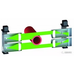 外徑檢測系統是雙鏡筒測頭測量。雙鏡筒測頭是指由2套發射鏡頭和2套接收鏡頭組成的光電測量系統。其中一個發射鏡頭和與其相對的接收鏡頭組成1組單測頭,在雙鏡筒測頭測量時每組單測頭測量被測物的一個邊沿尺寸。