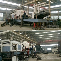 2、山東濟南日處理6000噸的石灰石碎石制砂生產線,使用有鋼機械的移動破碎站