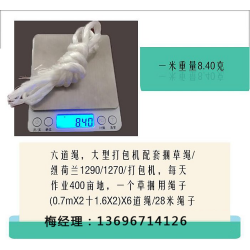 大方捆打捆機(jī)配套捆草繩農(nóng)機(jī)打包機(jī) 一般捆繩重量多是在5公斤左右,好的繩子*簡單的證明是兩股,細(xì)。 適合的機(jī)型,拉力150公斤左右的繩子打的草捆的重量在20到60斤,小方捆壓捆機(jī)包括在內(nèi)的有.福田雷沃打捆機(jī),上海世打爾小方捆機(jī)了,湖北玉龍,萊州金達(dá)威,茂盛自動化打捆機(jī),銀貓牌,安陽豫工