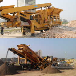 4、鄭州有鋼生產的輪胎移動破碎站在福建漳州日產1000噸的花崗巖破碎生產線中的應用;