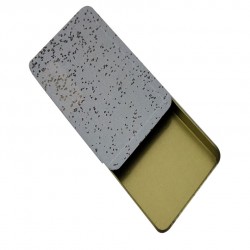 這款推拉鐵盒采用的是單面四色印刷工藝,外過皺紋油,內(nèi)涂金油,磨砂狀的樣式讓鐵盒富有金屬質(zhì)感,觸感十足,刺激消費(fèi)。