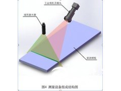 對于冷軋鋼板或冷卻后的熱軋鋼板的寬度測量,為了拍攝出清晰的測量基準線,在鋼板上方設置一個線形激光器,激光器發出的激光與鋼板寬度方向平行。如圖4所示。這樣,工業相機拍攝到的鋼板圖像上激光束照射的部位將會有一條清晰的亮線,根據這條亮線所占用的像素數即可得到鋼板的寬度尺寸。
