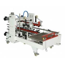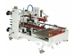紙箱經(jīng)前段封箱機(jī)中間上下封口后,進(jìn)入90°轉(zhuǎn)角機(jī)構(gòu),由推箱板推向紙箱機(jī)構(gòu)光電檢測(cè)到后機(jī)器根據(jù)紙箱規(guī)格,手動(dòng)調(diào)節(jié)機(jī)器寬度及高度,紙箱上下四個(gè)角邊同時(shí)自動(dòng)封箱,撫平。