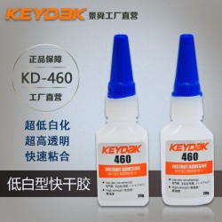 KD-460低白化瞬間接著劑可與塑料、金屬、木材、陶瓷、石材,此類不同材質有著快速、**美粘接。其粘接強度可達撕裂材質而不脫膠的超強效果,每平方厘米用上一滴膠液,拉伸強度可達20Mpa,其優良特性還表現在膠水完全固化后具有極高的剝離強度及耐沖擊強度.
