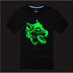 加工方式:在夜光轉印膜上絲網印刷調好的油墨顏色,再絲印熱熔膠,烘干,用燙畫機或高周波熱轉燙至服裝布料上,即可呈現客人想要的帶顏色夜光效果