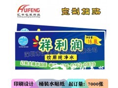 產品名稱:桶裝水貼紙 材料:透明龍BOPP,透明PET,PVC 厚度:20#、50#、75#(具體按照客戶要求來定) 小起訂量:10000張 印刷方式:UV印刷 印刷工藝:過光膜、光油、燙金、燙銀等 交貨期:7-10天左右 規格:按照客戶文件尺寸 送貨方式:快遞(深圳周邊可以送貨) 優勢:防水、防油、防偽、防霉、耐高溫、耐磨、抗冷凍等特點的環保類不干膠專業印刷生產廠家。