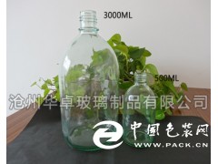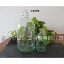 這款大容量試劑玻璃瓶 化工玻璃瓶的容量有2000ml 2500ml 3000ml三種規格尺寸,瓶口相對來說較小,適用于液體試劑的盛裝。 這款試劑瓶口為螺旋口,配有塑料蓋和塑料內塞,密封性優,這種試劑瓶特別適用于反映比較大的化學試劑實驗。