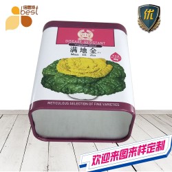 此款蔬菜種子罐采用的是單面四色印刷工藝,外過亮光油,過油目的不僅能提高鐵罐整體效果,具有強烈的金屬質感外,還對鐵罐印刷面形成一層致密的保護膜,對鐵罐刮花、防銹起到一定的防護作用。