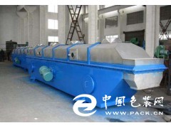 目前應(yīng)用*廣的臥式振動(dòng)流化床干燥機(jī),形狀和基本結(jié)構(gòu)與普通臥式流化床干燥機(jī)很相似。區(qū)別在于振動(dòng)流化床整個(gè)機(jī)體通過彈簧支撐在底座上,多孔板稍向出料端傾斜,機(jī)體一側(cè)或兩側(cè)裝有振動(dòng)電機(jī)。物料依靠機(jī)械振動(dòng)和穿孔氣流雙重作用流化,并在振動(dòng)作用下向前運(yùn)動(dòng)。