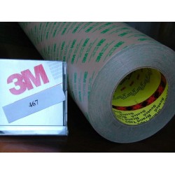 3M467MP,厚度:005mm 規格:1220mm*55m 基材:無基材純膠膜 特性:高粘性,耐高溫,抗溶劑性高,相對粘性HSE高,LSE低,耐溫長期:149,短期:204 加工訂制:可裁切寬度在2mm~1220mm之間可根據圖紙加工, 用途:一般工業組裝,面板沖型及其貼合,塑料等銘板的接著,零件固定等。