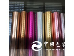 產品說明:仿金屬刻字膜是采用高品質的聚酯(PET)薄膜材料,經電鍍加工而成的金屬效果;100UM厚的耐高溫聚酯(PET),并帶有粘性的離型底材,經高溫燙印不變形,不脫膠,不掉色,高遮蓋,配套多種顏色,手感硬朗,可進行價值更高的深加工,讓其更適應于追求個性的時尚業的裝飾;