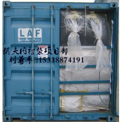 集裝箱內襯袋又稱干包裝。 適用于大宗有流動性的固體散裝顆粒狀、粉末狀產品的集裝箱運輸。