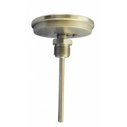 雙金屬溫度計是將繞成螺紋旋形的熱雙金屬片作為感溫器件,并把它裝在保護套管內,其中一端固定,稱為固定端,另一端連接在一根細軸上,成為自由端。在自由端線軸上裝有指針。當溫度發生變化時,感溫器件的自由端隨之發生轉動,帶動細軸上的指針產生角度變化,在標度盤上指示對應的溫度。