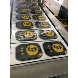 圓碗,方盒,豆腐盒、快餐飯盒等,適用于各種盒裝產品的生產,能自動完成各種盒子的熱封、自動切膜、無廢膜等功能。整機采用不銹鋼制造、智能數顯溫度控制系統,氣缸亞德客,電器件歐姆龍,具有封口強度高,故障率低等特點,是企業自動化生產的選產品