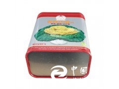 此款方形烏菜罐采用的是單面四色印刷工藝,外過亮光油,過油目的不僅能提高鐵罐整體效果,具有強烈的金屬質感外,還對鐵罐印刷面形成一層致密的保護膜,對鐵罐刮花、防銹起到一定的防護作用。