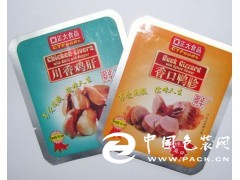 蒸煮袋多用三層材料復合而成,具有代表性的蒸煮袋結構是:外層為聚酯膜,作加強用;中層為鋁箔,作防光、防濕和防漏氣用;內層為聚烯烴膜(如聚丙烯膜),作熱合和接觸食品用。
