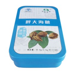 胖大海糖鐵盒屬于蓋內卷,口內卷,有扣骨的扁形兩片盒,材質為一*馬口鐵原料,特有的抗氧化性好,耐撞性高等特點,為產品安全提供可靠保障。采用的是四色印刷工藝,外過亮光油,內涂金油,特有的印刷工藝,圖案清晰表達廠商意圖。