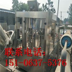 瓶子由通過風送道傳遞,然后通過撥瓶星輪傳送至三合一機的沖瓶機。沖瓶機回轉(zhuǎn)盤上裝有瓶夾,瓶夾夾住瓶口沿一導(dǎo)軌翻轉(zhuǎn)180°,使瓶口向下。在沖瓶機特定區(qū)域,沖瓶夾噴嘴噴出沖瓶水,對瓶子內(nèi)壁進行沖洗。瓶子經(jīng)沖洗、瀝干后在瓶夾夾持下沿導(dǎo)軌再翻轉(zhuǎn)180°,使瓶口向上。洗凈后的瓶子通過撥瓶星輪由沖瓶機導(dǎo)出并傳送至灌裝機。進入灌裝機的瓶子由瓶頸托板卡住并在凸輪作用下將瓶子上升,然后由瓶口將灌裝閥頂開。灌裝采用重力灌裝方式。灌裝閥打開后物料通過灌裝閥完成灌裝過程,灌裝結(jié)束后瓶口下降離開灌裝閥,瓶子通過卡瓶頸過渡撥輪進入旋蓋機。旋蓋機上的止旋刀卡住瓶頸部位,保持瓶子直立并防止旋轉(zhuǎn)。旋蓋頭在旋蓋機上保持公轉(zhuǎn)并自轉(zhuǎn),在凸輪作用下實現(xiàn)抓蓋、套蓋、旋蓋、脫蓋動作,完成整個封蓋過程。成品瓶通過出瓶撥輪從旋蓋機傳送到出瓶輸送鏈上,由輸送鏈傳送出三合一機。
