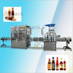 本生產(chǎn)線廣泛適用于各種調(diào)味醬料、粘稠體、膏體、半流體和各種含顆粒物料的灌裝、旋蓋、貼標(biāo)。