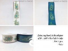【名稱】:孔雀羽毛印刷緞帶38mm