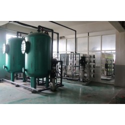 原水→原水加壓泵→多介質過濾器→活性炭過濾器→軟水器→精密過濾器→陽樹脂過濾床→陰樹脂過濾床→陰陽樹脂混床→微孔過濾器→用水點