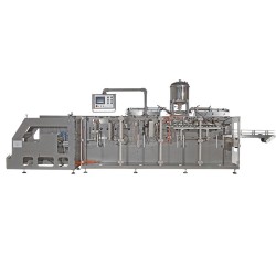 全自動水平式包裝機是一款水平式全自動卷膜成型袋包裝機,是集制袋、計量、灌裝、封口于一體的全新自動包裝機。以熱封性復合膜材料為外包裝,配置各種不同的灌裝頭,可對粉狀、顆粒、液體、粘稠體等不同的物料進行三邊封或四邊封包裝。
