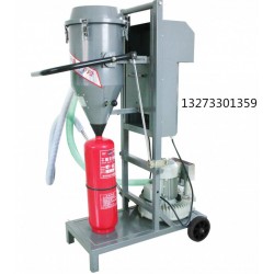 包括若干個(gè)傳輸輥,所述傳輸輥上設(shè)置有盛放干粉滅火器罐體的托盤,傳輸輥上面設(shè)置有帶粉閥的灌粉管,灌粉管通過(guò)輸粉管與粉罐相連接,傳輸輥的與灌粉管位置相匹配處設(shè)置有前后攔截柱,前后接近傳感器,頂桿和與電子秤相連接的重力傳感器,灌粉管,前后攔截柱,前后接近傳感器,頂桿,電子秤,重力傳感器分別與控制器相連接。本實(shí)用新型所提供的滅火器灌裝機(jī)快裝裝置通過(guò)設(shè)置傳輸輥和灌粉管等裝置,能一個(gè)個(gè)自動(dòng)灌裝干粉滅火器罐體,不再用人工灌粉,計(jì)量準(zhǔn)確又環(huán)保。滅火器灌裝機(jī)快裝裝置,其特征在于:包括若干個(gè)傳輸輥,所述傳輸輥 上設(shè)置有盛放干粉滅火器罐體的托盤,傳輸輥上面設(shè)置有帶粉閥的灌粉管,灌 粉管通過(guò)輸粉管與粉罐相連接,傳輸輥的與灌粉管位置相匹配處設(shè)置有前后攔 截柱,前后接近傳感器,頂桿和與電子秤相連接的重力傳感器,灌粉管,前后 攔截柱,前后接近傳感器,頂桿,電子秤,重力傳感器分別與控制器相連接 2,根據(jù)權(quán)利要求1所述的滅火器灌裝機(jī)快裝裝置,其特征在于:所述的灌 粉管處設(shè)置有抽嘴,灌粉管由抽嘴的中心部位穿出,抽嘴通過(guò)抽氣管與帶左右 電磁閥的真空泵相連接,抽嘴,抽氣管,左右電磁閥,真空泵分別與控制器相 連接。 3,根據(jù)權(quán)利要求2所述的滅火器灌裝機(jī)快裝裝置,其特征在于:所述的抽 氣管連接有過(guò)濾器,過(guò)濾器下端設(shè)置有蝶閥和回收罐,回收罐底端與輸粉管相 連接。 4,根據(jù)權(quán)利要求1所述的滅火器灌裝機(jī)快裝裝置,其特征在于:所述的灌 粉管與升降電機(jī)相連接。工半自動(dòng)方式,人手拿著吸把,采用旋渦風(fēng)機(jī)將干粉吸入罐體內(nèi)。 這種方式不但浪費(fèi)人力,時(shí)間,而且由于罐體離粉罐極近,對(duì)人體健康有害。 另外對(duì)粉的計(jì)量也不十分準(zhǔn)確。