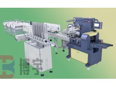 自動包裝機主要針對月餅、肉松餅、蛋糕類等外形規則及需帶托包裝的產品。