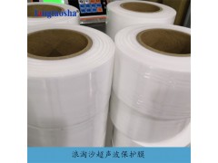 浪淘沙超聲波保護膜是由原料通過流延擠出所生產的薄膜,是一種新一代綠色環保可降解材料,具有可生物降解,廢棄或燃燒時不會對環境造成傷害,比重輕密度在0.93左右,無味,不含重金屬,,柔軟及堅韌,可耐低溫(-70度),抗水,鹽份及其他物質等特性。超聲波保護膜在超聲波焊接過程中,置于超聲波模頭與產品之間,在焊接時,避免模頭對產品的刮花,燙傷。