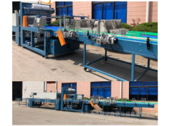 整臺設備由導瓶輸送機、分道裝置、包裝機、熱收縮機、無動力輥輸送機及電氣控制、氣動控制等部分構成。生產流程:XY-ST800全自動直線式包裝機是基于包裝薄膜受熱收縮的特性,利用光電開關傳感器在線檢測,采集信號由PLC(可編程控制器)程序集中控制處理,采用輸送帶連續式進瓶,分道雙進、分瓶板分列,閘門式分組,連續推桿推瓶裹膜,加熱切刀封切成包,加熱通道收縮冷風冷卻定型等機構來完成整個包裝全過程。