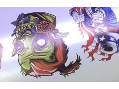 加工流程:將PU彩噴膜固定在噴印雕刻體機或戶外寫真機上,電腦輸出圖文打印,再巡邊雕刻圖文,手工撕掉多余廢料,用冷裱機將復膜紙與PU彩噴膜貼合,將彩噴膜打印圖文的一面定位,PU彩噴膜有膠的一面露在外面,然后通過燙畫機加溫加壓的方式熱貼在紡織品上,*后冷撕掉PU彩噴膜底膜,呈現**美的圖文。