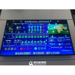 智慧公廁系統在廁所入口處設置顯示屏,顯示廁內布局、功能、溫度、濕度、空氣質量、廁位使用情況;