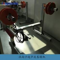 浪淘沙超聲波卷膜機特點:自動化工作系統、覆膜高低可自動調節、覆膜長短可調節,卷膜速度可和超聲波焊接時間同步。
