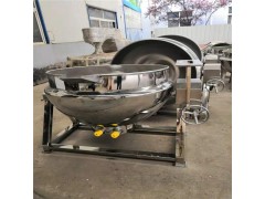 火鍋底料帶攪拌夾層鍋鍋體是由內外球形鍋體組成的雙層結構形式,中間夾層通入蒸汽加熱。有固定式、可傾式、攪拌式等樣式。
