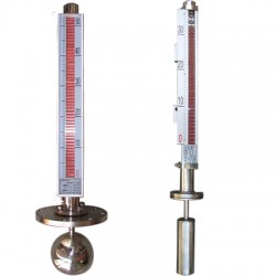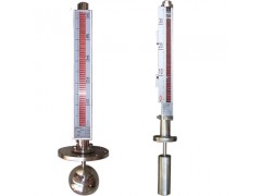 頂裝式磁翻板液位計主體外的翻板箱受主體內浮子(具有定向磁性源,按不同介質和壓力針對研制)的作用促其翻板翻動并顯示紅白顏色,并隨浮子的移動指示不同的液面高度,紅色始終表示液位的高低。在指示器左側配有醒目的刻度標尺,從而使液位的指示顯得更加清晰。
