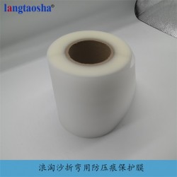 浪淘沙折彎用防壓痕保護膜是一種在折彎加工時保護產品的保護膜,折彎膜是在工件和下模拐角之間起到緩沖作用,從而防止工件在折彎時產生壓痕,使用時只要把折彎膜防在下模上即可。