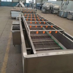 該設備在氣泡、沖浪、提升、噴淋等聯合工作下,具有洗潔凈高、節能節水、設備穩定可靠等特點。適用于果蔬原料的清洗;沖洗水經過過濾后循環使用;自帶提升、方便連線;根據果蔬及工藝要求特征設計;諸城冠通氣泡清洗機 辣椒清洗機 茄子清洗機 蔬菜加工設備