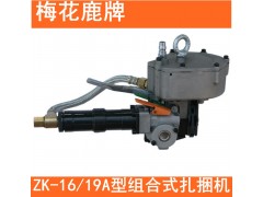 ZK-16/19A型組合式扎捆機是氣動打包機,鋼帶打包機,鋼帶捆扎機。主要用于鋼鐵企業和有色金屬企業捆扎各種規格的管材、板材、型材等產品,還適用于木箱包裝產品的捆扎。其特點是體積小、重量輕、結構緊湊、工作效率高,適應性強、使用方便、安全可靠。并在鎖緊機構中更換3種零件后,可以將使用16mm寬的捆帶換成19mm寬的捆帶。
