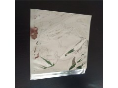 外觀呈銀色,反光性極強。外層VMPET膜是采用特殊工藝在塑料薄膜表面鍍上一層極薄的金屬鋁而形成的一種軟包裝材料;內層為可熱封CPE或CPP。